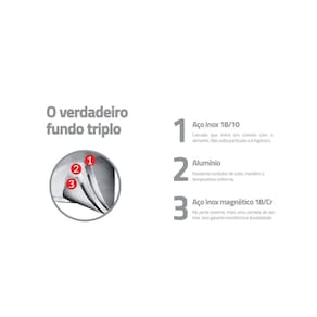 Panela Aço Inox 4,5L 22CM Solar Tramontina A Panela Tramontina em Aço Inox Fundo Triplo 22 cm diâmetro 4,5 L com Cozi Vapore em Aço Inox da linha Solar é a escolha certa para quem deseja ter uma cozinha bem equipada, prática e bonita. A Panela da Tramontina, oferece alta segurança e durabilidade para o uso diário, pois é produzida com aço inox, não soltando nenhum resíduo nos alimentos, além de contar com fundo triplo aço inox + alumínio + aço inox , que distribui o calor por igual, oferecendo um cozimento uniforme e rápido dos ingredientes. Conta com 5 dispositivos de segurança, que trabalham de forma integrada. Acompanha recipiente para cozinhar no vapor, medidos e capacidade interno, alça e cabo antitérmico, possibilitando um manuseio confortável e evitando possíveis queimaduras. Um item ideal para toda a cozinha e para quem deseja preparar receitas incríveis. Sistemas de Segurança: Pino Indicador Trava de Segurança Válvula de Segurança Válvula Seletora Escape de Segurança Recomendações de uso A capacidade volumétrica máxima para cozimento é de 2/3 da capacidade total da peça. Para que sua panela em aço inox fique sempre bonita e com brilho, recomendamos que seja lavada somente com detergente e esponja. A Tramontina desenvolveu uma pasta especial para polir e remover manchas nos produtos de aço inoxidável, que está disponível nos principais pontos de venda. Evite deixar alimento na panela por muito tempo. O sal também pode provocar manchas e até corrosão. Se surgirem manchas brancas devido ao excesso de cloro na água ou amido dos alimentos, limpe-a com um pouco de vinagre ou suco de limão. Chamas muito forte podem causar alteração na cor do aço, provocando manchas douradas ou azuladas. Recomenda-se utilizar fogo baixo. Só exponha sua panela a chamas de tamanho igual ou inferior a seu fundo. Não use produtos abrasivos, pois eles podem riscar o aço inoxidável. O anel de vedação foi desenvolvido especialmente para as panelas Solar. O anel de vedação deve ser substituído sempre que ficar rígido ou quebradiço. Período de validade do anel de vedação: 2 anos. Para uma maior vida útil deste item, unte-o periodicamente com óleo de cozinha. Antes de usar sua panela Solar Tramontina pela primeira vez, leia atentamente as indicações contidas no manual de instruções e guarde-o para consultas futuras. Especificações: Marca: Tramontina Modelo: Panela Aço Inox 4,5L 22CM Solar Tramontina Linha: Solar Capacidade: 4,5L Diâmetro: 22cm Material: Aço Inox Marca: Não Informado Ean: 7895481001041