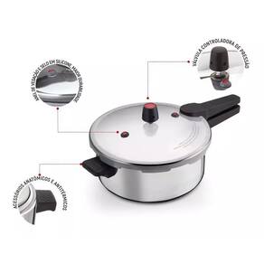 Materiais de qualidade O principal benefício do alumínio é que, por ser um excelente condutor de calor, os alimentos cozinham muito mais rápido que em comparação com outros metais. Por sua vez, os produtos de alumínio são bastante leves, o que os faz confortáveis para serem levados de um lugar a outro na cozinha. Panela de Pressão 5 Litros com Fechamento Externo Qualquer dúvida estamos a disposição