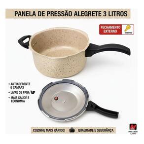 Panela antiaderente 3l fechamento externo bege polida Contém 1 peça: - panela 3 litros / fechamento externo / marca alegrete Material: alumínio Cores: bege vanilla Comprimento: 41 cm Largura: 20cm Altura: sem tampa 11 cm Altura: com tampa 17,5 cm Capacidade: 3 litros Antiaderente: sim, revestimento interno e externo. Alça e cabo: baquelite Produto acompanha embalagem sim Tipo de embalagem: caixa litografada Tampa: polida Diferenciais deste produto Este produto é livre de pfoa, ou seja, livre de substâncias químicas no seu revestimento que torna o antiaderente mais seguro para sua saúde. O revestimento interno possui 6 camadas antiaderente e rotoprint. Maior economia de óleo com a tecnologia antiaderente. Marca: Não Informado
