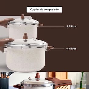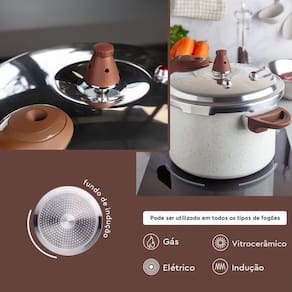 Além disso, suas paredes externas possuem pintura na cor vanilla trazendo mais leveza para a sua cozinha.Seu cabo e alça de soft touch proporcionam mais conforto e melhor manuseio.Possui 4 dispositivos de segurança (uma trava, duas válvulas de trabalho e um escape de segurança).