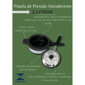 Panela Antiaderente Teflon Alumínio Imperial 2L Preto Com a panela antiaderente da Alumínio Imperial você também adquire praticidade e segurança para você e sua família. Seus componentes passam por testes rigorosos e o produto acompanha selo de qualidade INMETRO. Benefícios: - A borracha altamente resistente impede que o ar escape e faça com que a panela perca a pressão interna. - A válvula impede que o limite seja excedido. - Possui trava de segurança. - Alumínio Informações Técnicas: - Litragem: 2,0L. Marca: Não Informado