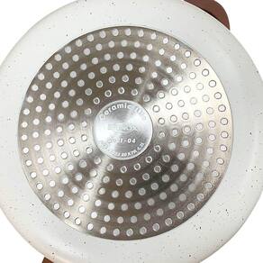 Material: Corpo de alumínio, Revestimento interno e externo de antiaderente Ceramiclife, Alças e cabos de baquelite com revestimento softtouch.