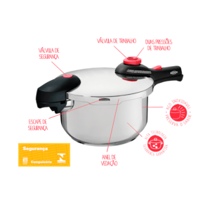 A Panela de Pressão Supra tem corpo em aço inoxidável - que preserva o sabor dos alimentos e conserva seus nutrientes - e fundo triplo - para um cozimento mais rápido e uniforme. Seu principal diferencial é a alta tecnologia que garante total segurança ao produto. A Panela de Pressão possui cinco dispositivos de segurança: válvula de segurança, escape de segurança, anel de vedação, válvula de trabalho e duas pressões de trabalho, todos aprovados pelo Inmetro. Possui fechamento externo, muito mais prático para manusear. Pode ir a lava-louças . Panelas de Pressão Brinox, maior variedade de receitas no seu dia a dia. Acompanha ferramenta para limpeza. Garantia: 2 anos.