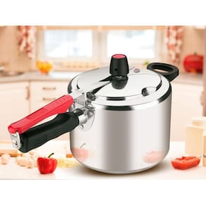 Prepare alimentos saborosos com a Panela de Pressão Clock 4,5 litros. Moderna, prática e segura, a panela pressão Clock possui um pino na tampa que indica a pressão interna, ele levanta para indicar que a panela está com pressão e abaixa para mostrar que está sem pressão. Além disso, a panela de pressão 4 5 litros conta com 3 sistemas de , garantindo maior confiança durante o uso. O 1 sistema, possui uma saída de vapor usual, ela ajuda na liberação da pressão interna durante a utilização da panela. Já o 2 sistema de , será acionado para liberação da pressão quando houver o entupimento do peso. E no 3 sistema, a borracha de vedação se deslocará automaticamente pelas cavidades laterais da tampa para liberar a pressão interna, caso o pino e peso fiquem entupidos. A panela de pressão clock 4 5 é produzida em alumínio, um material leve e ideal para você que gosta de panelas tradicionais, sem deixar de lado a qualidade. O seu revestimento interno é antiaderente e facilita o cozimento dos alimentes, envidando que grudem na panela pressão e possibilita o preparo de alimentos mais saudáveis, com redução do uso de óleos. E o revestimento externo, dessa panela de pressão pequena, possibilita uma fácil limpeza. A panela de pressão clock conta ainda com asa ergonômica, para um melhor encaixe das suas mãos durante o uso. A tampa da panela 4,5 litros possui um botão que facilita sua abertura e seu fechamento, abrindo somente quando não tiver pressão e só pegando pressão quando fechada. Ela tem também uma presilha metálica e fixação ultrarresistente, para que não abra durante o cozimento e garante o manuseio mais durante e após o cozimento. O seu exclusivo sistema, alivia a pressão icalmente de maneira rápida e segura. Além de segura e fácil de utilizar, a sua capacidade de 4,5 litros torna ela a melhor panela de pressão para sua família. Tipo de Panela: Tachos | Cor: Prata