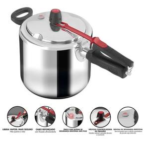 A Panela Clock Fechamento Interno 7 litros Polida é indispensável para o preparo de diversos pratos -possui também um recorte especial que impossibilita o encaixe errado da tampa no corpo da panela. Esse sistema permite a centralização correta da tampa, feita de forma fácil e intuitiva e garantindo melhor vedação. -conta com três sistemas de segurança: válvula controladora peso - saída de vapor usual para liberar a pressão interna durante o funcionamento normal da panela; válvula repetitiva pino e sistema SafePlus borracha -caso a panela esteja entupida o anel de vedação se desloca pelas cavidades laterais da tampa, liberando a pressão interna. A Clock Fechamento Interno 7 litros Polida traz cabo reforçado e asa ergonômica, para garantir facilidade e máxima segurança no manuseio. Clock, a mais segura Especificações: Marca: Clock Tipo de Panela: Panela Capacidade: 7L Fogões Compatíveis: Gás, Elétrico, Cerâmico e Halogênio Sistema de Segurança: 3 Cor: Polida Tipo de Material: Alumínio Diâmetro: 20cm 7896075036975 Marca: Não Informado Ean: 7895929547285