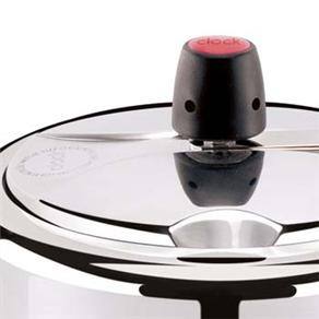 Prático, eficiente e com sistema de segurança. A panela de pressão Polida Original possui o Clock Safe Plus, um sistema de segurança avançado, adicional às válvulas de segurança tradicionais. Este sistema complementar de segurança permite que o vapor possa sair pelas borrachas de vedação, automaticamente, em caso de necessidade. De alta qualidade, conta também com a asa ergonômica para maior conforto na hora de manusear o produto, cabo reforçado e presilha metálica do cabo.