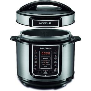 Preparar suas melhores receitas fica mais prático com a panela elétrica master cooker 5l da mondial. São 14 funções programáveis e timer que permite programar o funcionamento com até 24h de antecedência. O aparelho tem 5l de capacidade e conta com display digital que facilita a visualização das funções, do tempo e da temperatura da panela. Conteúdo da embalagem: - 01 - panela de pressão elétrica digital master cooker - 01 - colher - 01 - copo medidor - 01 - livro de receitas - 01 - manual de instruções caraterísticas: - capacidade para 5l - tampa com alça - acabamento em preto inox luxuoso conforme a foto. - preparo inteligente e rápido - cuba removível: - ajuste de tempo - coletor de vapor - lâmpada piloto - desligamento automático especificações técnicas: - capacidade: 5 litros - portátil sem fio : sim - espeto giratório: não - pode ser levado à mesa: sim - bandeja de resíduos: não - antiaderente: sim - possui tampa: sim - seletor de temperatura: não - grelha: não - timer: sim - fritadeira: cesta removível: não - funções: cozer alimentos - alimentação: energia elétrica - potência w : 900w - consumo kw/h : 0,9kw/h - material/composição: pp e aço inox - funções: cozimento lento,manter aquecido - altura: 30 cm - largura: 33 cm - profundidade: 30,2 cm - comprimento do cabo: 1,5 m - peso: 4,7 kg - vinisound - Este produto possui 12 meses de garantia. Imagens meramente ilustrativas. A garantia é responsabilidade do fabricante e esta limita se apenas á troca de qualquer produto encontrado com defeitos de fabricação desde que tenha sido utilizado corretamente ou devidamente instalado por um profissional qualificado. Atenção: de acordo com a lei federal nº 11.291, a exposição prolongada a ruídos superiores a 85 db pode causar danos ao sistema auditivo.