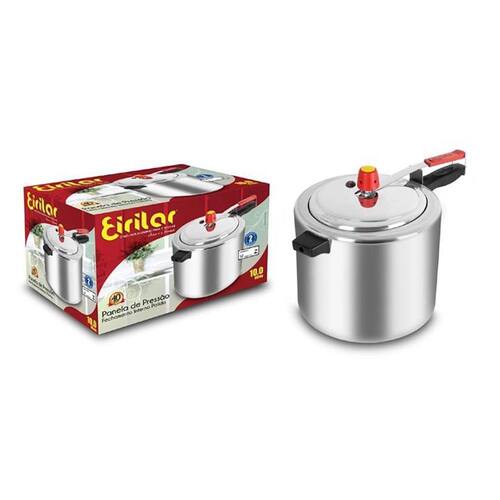 Panela de Pressão de fechamento interno, confeccionada em alumínio, fabricada pela Indústria de Alumínios Eirilar Ltda.tradicional Empresa do setor. Desenvolvida especialmente para atender a um segmento de mercado que necessita preparar pequenas porções de alimentos. Desde que obedecidas as instruções de uso inseridas nas embalagens, esta panela de pressão é 100% segura, sendo certificada pelo INMETRO.