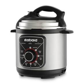 A Panela de pressão elétrica essencial da Itatiaia também oferece 5 funções pré-programadas, timer de até 90 minutos, desligamento automático com aviso sonoro e indicador sonoro de preparo, além de sua capacidade de 3 litros, seu acabamento preto com inox e seus pés antiderrapantes.