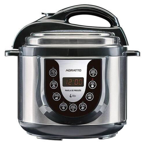 A Panela de Pressão Elétrica Agratto 4 Litros com Timer 220V possui painel digital com 6 funções pré definidas, prepare pudim, arroz, feijão, carnes e legumes com apenas um toque, além disso pode ser usada para cozinhar, refogar ou aquecer outros alimentos. Mais segura que panelas de pressão comum.