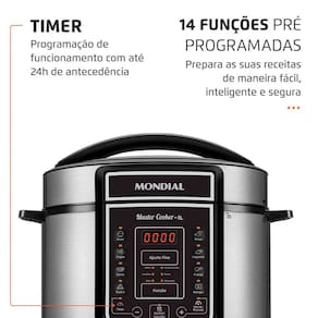 Tem temporizador (timer). A panela elétrica de pressão digital master cooker pe38 foi desenvolvida para uso doméstico, residencial.