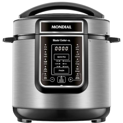 DISPLAY DIGITAL COM 14 FUNÇÕES PRÉ-PROGRAMADAS Com a Panela de Pressão Elétrica Digital da Mondial, você vai cozinhar de maneira segura e com muita praticidade no uso! O painel digital facilita a escolha das receitas e do tempo de preparo. As 14 funções predefinidas são: feijão, arroz, carne, frango, peixe, frutos do mar, carne de porco, macarrão, legumes, lentilha, milho, bolo e pudim, além da função refogar. É só selecionar e mãos à obra!