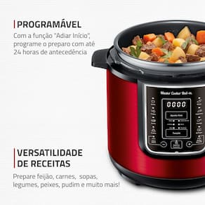 Com a Panela de Pressão Elétrica Digital Master Cooker 6L, você pode preparar diversas receitas, que vão muito além de feijão. Sua versatilidade é um ponto forte: as 14 receitas predefinidas facilitam o preparo de uma variedade de pratos, desde arroz e carnes, até legumes e sobremesas. O painel digital é intuitivo e fácil de ler, descomplicando a operação. Possui acabamento impecável em aço inox para se destacar em sua cozinha. Saiba mais sobre a PE-60-6L-RI da Mondial: