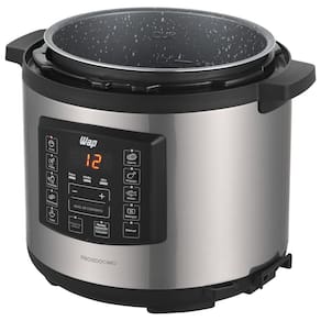 Produto: Panela elétrica digital 6 litros - Prosdócimo WPPE1 Marca: Wap Voltagem: 110VDescrição: A Panela elétrica digital 6 litros Prosdócimo WPPE1 da Wap vem para facilitar sua rotina, combinando praticidade e segurança, perfeita para fazer suas receitas com confiança e muito sabor. O cesto interno com capacidade de 6 litros, possui revestimento antiaderente GrayStone, garante que os alimentos não grudem e proporciona uma limpeza muito mais fácil. Equipada com um painel digital, a Prosdócimo WPPE1 oferece uma experiência de programação simplificada. Ajuste os tempos de cozimento e configurações conforme suas preferências. O timer programável de até 24 horas possibilita o planejamento antecipado das refeições. A Panela Elétrica da Wap integra 10 dispositivos de segurança, garantindo tranquilidade durante o uso. Desde a proteção contra superaquecimento até a liberação controlada , proporcionando um cozimento seguro e descomplicado. Além da função refogar, que realça os sabores dos alimentos, a função de manter aquecido elimina preocupações com refeições frias. Mantém seus pratos na temperatura perfeita até o momento de servir, garantindo a mesma delícia em cada mordida. Com 8 receitas pré-programadas simplifica a preparação de pratos familiares. Prepare carnes suculentas, ou aquela deliciosa mandioca cozida com apenas um toque. Além disso, os 3 níveis de cozimento disponíveis são ideais para alcançar o ponto de cozimento perfeito para diversos alimentos, desde vegetais até diferentes tipos de carne. O cabo elétrico removível simplifica o armazenamento e a limpeza. Acompanha um conjunto completo de acessórios: duas colheres, copo medidor, coletor de água e cesto de vapor. Com uma capacidade versátil, você pode explorar uma infinidade de pratos, desde feijão e carne até sopas, arroz, vegetais e muito mais. Prepare-se para produzir receitas saborosas com a WAP Panela Elétrica. A combinação de eficiência, segurança e versatilidade a torna o parceiro perfeito para a sua rotina culinária.Especificações: Pressão de trabalho: 70 kPaPotência: 1000WFrequência: 60 HzCapacidade: 6 LComprimento do cabo elétrico: 1 mTimer: Pré programado, até 24 horas de antecedênciaDisplay: SimPés: antiderrapanteMaterial do recipiente interno: antiaderenteFunções: CozinharAviso sonoro: SimDesligamento automático: SimTrava de segurança: SimCor: Inox e PretoMaterial: Polímeros e Metais.Itens Inclusos: Colher plastica;Colher de sopa;Copo medidor;Coletor de água;Bandeja para Vapor. Marca: Não Informado