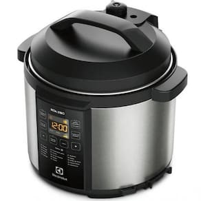 Características: Função Menu com 15 receitas pré-programadas Aviso Sonoro na tampa Travamento automático da tampa Travamento mecânico da tampa Pino de verificação na tampa Controle de pressão Dispositivo de Alívio de pressão Válvula de alívio de pressão Cobertura antibloqueio da válvula limitadora de pressão Termostato Recipiente de 6 Litros. Painel programável com display digital em LED Função Programar Preparo Função Manter Aquecido Ajuste de intensidade de pressão Pressão baixa, média ou alta Recipiente e cabo elétrico removíveis Recipiente interno antiaderente Não gruda os alimentos no fundo e é fácil de limpar