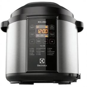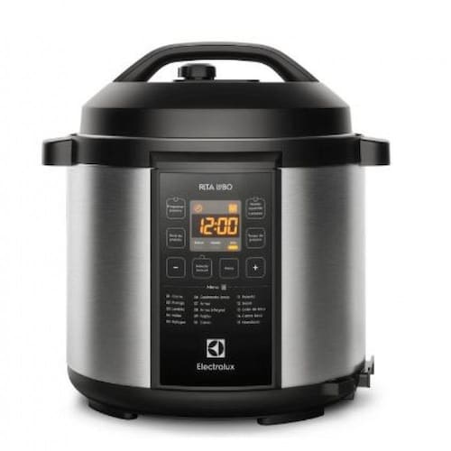 Características: Função Menu com 15 receitas pré-programadas Aviso Sonoro na tampa Travamento automático da tampa Travamento mecânico da tampa Pino de verificação na tampa Controle de pressão Dispositivo de Alívio de pressão Válvula de alívio de pressão Cobertura antibloqueio da válvula limitadora de pressão Termostato Recipiente de 6 Litros. Painel programável com display digital em LED Função Programar Preparo Função Manter Aquecido Ajuste de intensidade de pressão Pressão baixa, média ou alta Recipiente e cabo elétrico removíveis Recipiente interno antiaderente Não gruda os alimentos no fundo e é fácil de limpar