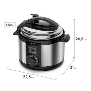 A Panela de Pressão Elétrica assinada por Rita Lobo ainda conta com Design sofisticado em aço inox escovado, que além de elegante, é durável e fácil de limpar.