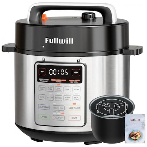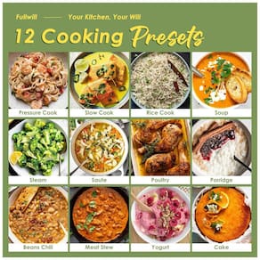 Simplifique sua cozinha e economize muito com a Panela de Pressão Fullwill 9 em 1! Esta potência substitui sua panela de pressão, panela elétrica, panela de arroz, iogurteira, fazedora de bolos, frigideira, sistema de vaporização, aquecedor de alimentos e fabricante de sopas. Cozinhar sem esforço com 12 Programas Inteligentes que preparam refeições perfeitas com o toque de um botão! Escolha entre Cozimento Rápido, Cozimento Lento, Aves, Vapor, Mingau, Sopa, Feijão/Chili, Bolo, Carne/Ensopado, Arroz/Grãos, Refogar ou Iogurte. Limpeza fácil e culinária mais saudável com a panela interna durável antiaderente livre de PFOA, carcaça em aço inoxidável resistente a impressões digitais e acessórios laváveis na lava-louças. Prepare refeições instantâneas em uma única panela e tenha o jantar pronto até 70 mais rápido do que o método tradicional! Cozinhe com tranquilidade e segurança, com mais de 10 recursos de segurança embutidos, incluindo proteção contra superaquecimento, trava de segurança na tampa e controle de pressão. Manual detalhado e livro de receitas inclusos para facilitar o uso. Tamanho familiar de 6 litros, perfeito para 4-6 pessoas, refeições familiares ou preparação semanal. Cozinhe uma vez, sirva a todos.