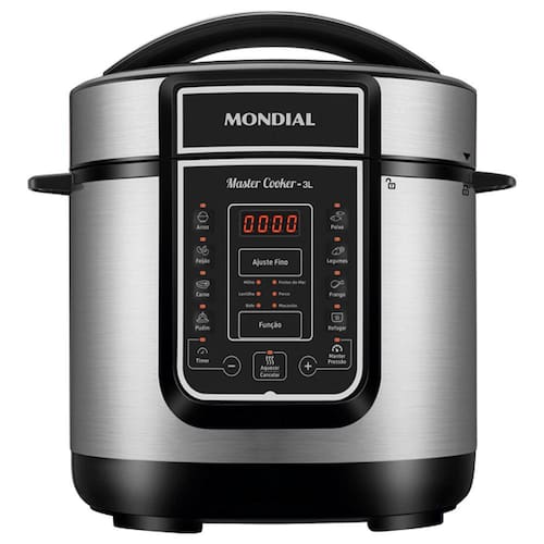 Crie deliciosas receitas com a Panela de Pressão Elétrica Digital PE-40 Master Cooker Preto 3L com 700W de potência. Com ela, além do função Timer, você tem mais 14 funções para poder preparar desde feijão, carnes a doces como um maravilhoso pudim. A panela ainda conta com dupla válvulas de segurança que impede a pressão ultrapasse o limite, sem falar da alça ergonômica e térmica, que dá praticidade e segurança reforçando o sistema da trava. Um design moderno e lindo.