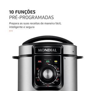 A Panela de Pressão Elétrica Pratic Cook 5L Mondial tem 5 Litros de capacidade, na medida certa para toda a família. Possui painel com fácil acesso às 10 funções pré-programadas, válvula de segurança e cuba removível com revestimento antiaderente. O design em inox é sofisticado e garante mais durabilidade ao produto.