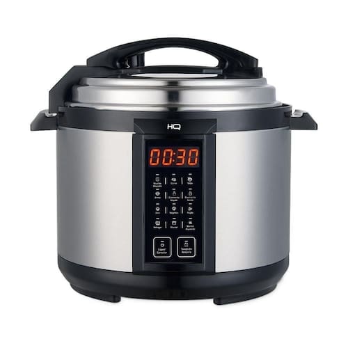 Panela de Pressão Elétrica Digital HQ 5 Litros Inox com painel digital LED, funções pré-programadas, economia de energia, pote antiaderente, trava automática, válvula de alívio de pressão, desligamento automático e função manter aquecido por até 12 horas.Lâmpada piloto