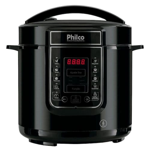Capacidade em Litros: 6.0 Pode ser Utilizada em Fogões: Elétricos Tipo de Panela: Elétrica Material Principal: Metal Revestimento Interno: Antiaderente Consumo Aproximado de Energia: 0,01 kw/h até 1 kw/h Material da Tampa: Plástico Material Geral: Metal Modelo: PPP01P Material: Metal, Plástico. Potência: 1000.0 Diâmetro: 33.0 Itens Inclusos: 1 Panela de Pressão, 1 Espátula e 1 Copo Medidor. Marca: Philco