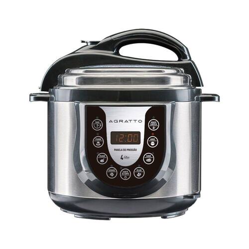 Segura, moderna, prática e bonita. Uma variedade de pratos ao seu dispor. As Panelas de Pressão Agratto são ideais para sua residência. Com dez itens de segurança as Panelas Agratto são muito mais seguras que uma panela de pressão comum. Podem ser usadas no preparo de diversos tipos de alimentos para cozinhar, refogar, fritar ou aquecer. ? Painel eletrônico Com timer eletrônico e diversas programações. ? Cuba antiaderente Com capacidade de quatro litros é removível e antiaderente. ? Mais segurança Dez itens de segurança para sua proteção e alça isotérmica. ? Corpo em inox e aço escovado. Um toque de beleza à sua cozinha. ? Pode ser levada à mesa Pode ser levada diretamente à mesa para servir a refeição. ? Conjunto para panelas Copo medidor, colher de alimentos e reservatório de água. Potência 800W Voltagem 127v Garantia 12 meses