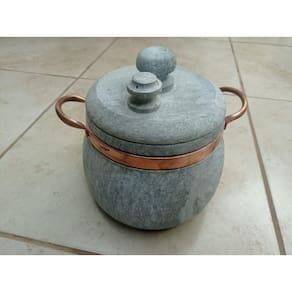 O sabor de minas até você....Panela de pressão em pedra sabão com longa durabilidade; Retém o calor por longo tempo deixando o alimento quente por muito mais tempo. MedidasNúmero 3 (aproximadamente 3 litros) Observação:* O próprio peso da tampa segura a pressão e retém o calor, o escape da pressão se dá por uma válvula também feita em pedra sabão. * A panela precisa ser curada para ser usada o que é feito apenas uma vez, juntamente com a mercadoria irá um folheto explicativo.* Todo material em pedra sabão-após curado muda de cor ficando com uma tonalidade mais escura.* Fotos ilustrativasPor ser um produto artesanal as peças podem variar e as medidas e pesos são aproximado, porém a qualidade continua a mesma.