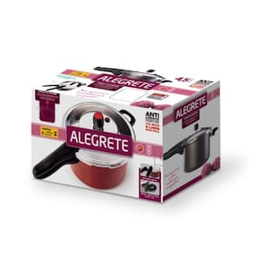 Panela 4,5L Alegrete - Fechamento Externo, Cinza Segurança, eficiência e praticidade no seu dia a dia. A Panela Alegrete 4,5L é fabricada em alumínio laminado, garantindo excelente condução de calor e maior durabilidade. Conta com revestimento antiaderente Nota A por dentro e por fora, o que facilita o preparo dos alimentos e a limpeza após o uso. Seu sistema de fechamento externo é prático e seguro, aliado ao cabo e à alça em baquelite, material resistente ao calor que oferece mais segurança no manuseio. A tampa é feita em alumínio laminado polido, com capa em nylon para maior resistência e um visual moderno. Possui dois sistemas de segurança: Válvula de segurança em borracha e nylon Válvula de escape em nylon e zamak, com pressão de operação de 80 kPa A cor cinza traz elegância e neutralidade, ideal para qualquer estilo de cozinha. Marca: Não Informado