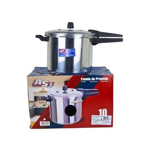 Panela Grande 10 Litros polida fechamento externo Panela Alumínio São José 10 Litros - Alumínio com Fechamento Externo Com capacidade generosa e estrutura robusta, a panela Alumínio São José de 10 litros com fechamento externo é a escolha ideal para quem busca praticidade, eficiência e segurança no preparo de grandes refeições. Principais características: Capacidade de 10 Litros - Ideal para cozinhas domésticas e comerciais, perfeita para grandes porções. Fechamento Externo Prático - Sistema de trava externa de fácil manuseio e excelente vedação. Alumínio Reforçado - Material leve, resistente e com alta condução de calor para cozimento uniforme. Redução de Tempo no Preparo - Pressurização eficiente que acelera o cozimento dos alimentos. Sistema de Segurança Múltiplo - Conta com válvula de trabalho, válvula de segurança e anel de vedação resistente. Cabos Reforçados e Ergonômicos - Proporcionam firmeza e segurança ao movimentar a panela. Design Funcional e Fácil de Limpar - Estrutura interna e externa que facilita a manutenção diária. Marca: Não Informado
