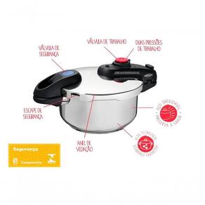 Panela De Pressão Inox 3 L - Supra 20 X 17 Cm 3 L - Brinox A Panela de Pressão Supra tem corpo em aço inoxidável - que preserva o sabor dos alimentos e conserva seus nutrientes - e fundo triplo - para um cozimento mais rápido e uniforme. Seu principal diferencial é a alta tecnologia que garante total segurança ao produto. A Panela de Pressão possui cinco dispositivos de segurança: válvula de segurança, escape de segurança, anel de vedação, válvula de trabalho e duas pressões de trabalho, todos aprovados pelo Inmetro. Possui fechamento externo, muito mais prático para manusear. Pode ir a lava-louças . Panelas de Pressão Brinox, maior variedade de receitas no seu dia a dia. Acompanha ferramenta para limpeza. Garantia: 2 anos. Material - Aço Inox Composição - 01 Panela de Pressão Inox 3 L Certificação - - Registro-003905/2020 OCP-Falcão Bauer Garantia - 2 anos para vícios e defeitos de fabricação.