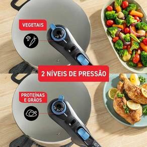 Panela De Pressao Inox 8L Fechamento Externo A Panela Rochedo Inox Trendy 8L combina a elegância e a resistência do aço inox em um só produto Com fechamento externo e capacidade de 8L, possui botão auxiliar que oferece facilidade na hora de abrir e fechar. Quanto à segurança, você pode ficar tranquilo A Rochedo Inox Trendy possui 5 sistemas de segurança, garantindo total proteção durante o uso: 1 - Válvula de segurança: controla a pressão interna; 2 -Janela de segurança: libera o excesso em caso de entupimento nos demais sistemas; 3 -Trava interna: abertura somente após o término da pressão interna; 4 - Tampa fecha fácil: garante o fechamento correto da tampa; 5 - Indicador : pino interno na cor vermelha indica se a panela está sob pressão. Essa panela possui dois níveis , para preservar os nutrientes e garantir o cozimento adequado: um para ingredientes mais robustos, como proteínas e grãos, e outro para preparar alimentos mais delicados, como vegetais. Com fundo triplo, o calor é distribuído de maneira uniforme, resultando em um cozimento mais rápido e homogêneo, o que também contribui para a economia de energia. E a melhor parte Ela é compatível com todas as fontes de calor, incluindo indução. Descubra a Panela Rochedo Inox Trendy 8L, a escolha perfeita para preservar os nutrientes dos seus alimentos com a máxima segurança