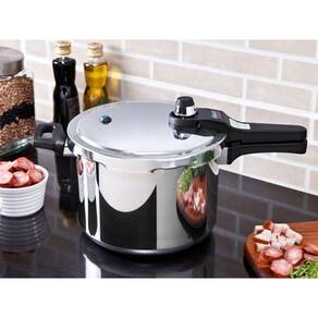 O produto ainda possui cabo e alça de baquelite antitérmico que proporciona grande praticidade e segurança para manuseá-la durante o uso, juntamente com seu design que possui o corpo e tampa em alumínio na cor polida. Desfrute de uma refeição feita com a Panela de Pressão Nigro Eterna e sinta o sabor da tradição que leva esta marca. Características: Marca: Nigro Código do Fabricante: 097108 Linha: Eterna Cor: Polida Material: Alumínio Material da Alça/Cabo: Baquelite Antiaderente: Não Espessura: 3,3mm Capacidade: 8L Diâmetro: 22cm Fogões Compatíveis: Gás, elétrico e vitrocerâmico Compatível com Lava-louças: Não Material da Tampa: Alumínio