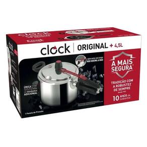 Panela de Pressão Clock autêntico e Fechamento Interno 4,5L é a mais segura, conta com a tradição e a robustez de sempre, indispensável para facilitar a sua vida e levar mais segurança à sua cozinha.