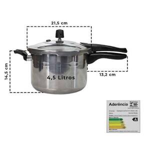 Panela de Pressão Speed 4,5L Polida Fechamento Externo. Perfeita para cozinhar de maneira rápida, eficiente e segura. Capacidade de 4,5 litros, ideal para as refeições do dia a dia. Possui fechamento externo, facilitando a abertura e o fechamento. Design polido, trazendo beleza para sua cozinha. Conta com anel de vedação e válvula controladora de pressão em silicone. Válvula de segurança em alumínio para durabilidade e resistência. Três sistemas de segurança: pino de segurança no cabo da tampa, janela lateral para abertura do anel e válvula de segurança. Trava mecânica na tampa para limitar o movimento de giro. Dimensões aproximadas: altura 18cm, largura 23cm, comprimento 41cm e diâmetro de 20cm. Compacta e perfeita para qualquer cozinha. Adquira a sua Panela de Pressão Speed 4,5L Polida Fechamento Externo e desfrute de refeições rápidas e deliciosas Ean: 7898648945295