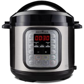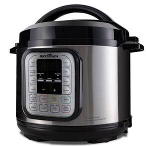 Panela Supreme Gold 900W BPP02G - Britânia Voltagem: 110V Ela traz 11 programas de cozimento pré-definidos. Basta colocar o alimento dentro, selecionar a opção, e pronto Você também tem a opção de programar o cozimento automático com até 24 horas de antecedência. Muito mais praticidade dentro da cozinha, simples assim. Mais praticidade para cozinhar o feijão que a família toda gosta. Prepare refeições tamanho família Graças a sua incrível capacidade de 5L . Maior durabilidade e poder de antiaderente com revestimento Supreme Gold. Preparos e limpeza muito mais fáceis. Sirva os alimentos quentes e saborosos quando você quiser, isso porque a função Manter Aquecido mantém a temperatura por muito mais tempo. Além de trazer a função Manter Aquecido, que permite servir os alimentos aquecidos por muito mais tempo. E não se preocupe, os alimentos não irão grudar graças ao seu revestimento antiaderente Dura Mais. Possibilitando uma limpeza muito mais fácil. E para evitar qualquer acidente, a Panela Britânia Multifuncional Digital BPP2PI conta com 9 sistemas de segurança, para que você cozinhe de forma muito mais tranquila e segura Prepara diversos tipos de alimentos, feijão carnes, arroz, canjica, legumes entre outros, Painel com controle digital e fácil acesso as funções; Visor digital para acompanhamento da programação e dos preparos; Possui 11 modos de cozimento pré-programado, permite iniciar o cozimento com apenas um toque; Modos de cozimento pré-programados: Sopa, Carnes/Músculo, Feijão, Frango, Arroz, Milho, Pudim, Legumes, Iogurte, Cozimento Lento, Refogar. Função manter aquecido, mantém os alimentos aquecidos após o preparo. Pode ser Utilizado para aquecer os alimentos a uma temperatura aproximada de 70C; Função refogar, para dourar temperos e outros alimentos antes de cozinhar na pressão; Função cozinhar, permite programar o tempo de cozimento manualmente Função Pressão permite ajustar o nível para o cozimento, nível normal e alta pressão Função cozimento lento, permite cozinhar alimentos em temperaturas mais baixas por até 12horas Timer programável, permite programar o preparo dos alimentos com até 24 hora de antecedência; Tigela removível com capacidade de 5L, possui revestimento interno antiaderente, fácil de usar e limpar. A tigela possui escalas para preparar até 10 xícaras de arroz cru; Acompanha colher e copo dosador; Suporte para apoiar a colher no produto; Possui 9 sistemas de segurança; Tampa com trava de segurança; Válvula de controle de vapor removível, Alças laterais, facilidade para transportar o produto; Silenciosa, não libera vapor durante o cozimento dos alimentos; Alças laterais com encaixes para apoiar a tampa; Cordão elétrico removível, permite levar a panela à mesa com facilidade; Pés antiderrapantes; Acabamento em inox; Composição: metal, plástico e tigela em alumínio; Disponível em 127V e 220V.
