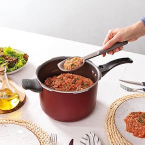 Fabricada em alumínio com revestimento antiaderente Starflon Max, ela garante que os alimentos não grudem, facilita a limpeza e proporciona um cozimento rápido e uniforme. Sua tampa em alumínio escovado encaixa perfeitamente, mantendo a pressão ideal para um preparo seguro e eficaz.