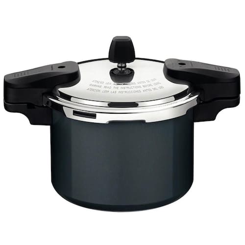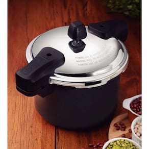 A panela de pressão de 4,5L Tramontina Torino é produzida em alumínio de 4 milímetros de espessura e com revestimento interno e externo cerâmico tornando o cozimento dos alimentos mais rápido e uniforme. Possui alças em baquelite antitérmico e tampa de alumínio com acabamento externo polido e interno satinado composta por travas que oferecem maior segurança durante sua utilização. Para garantir maior versatilidade na cozinha ela ainda pode ser utilizada em fogões a gás, elétricos, vitrocerâmicos e indução.