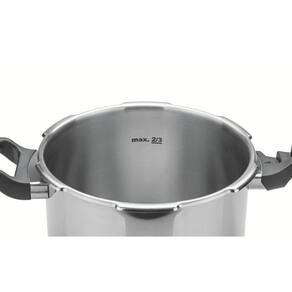 Panela de Pressão Tramontina Brava de 80 kPa de pressão de trabalho. Todos os atributos do aço inox com a agilidade e desempenho que só uma panela de pressão oferece. Além da praticidade, as panelas de pressão Tramontina são extremamente seguras. Totalmente feita de aço inox, por isso não solta nenhum resíduo nos alimentos, mantendo-os saudáveis. Altamente durável, mantém as características , preservando a beleza, a higiene e a durabilidade do material. O fundo triplo (aço inox + alumínio + aço inox) distribui o calor uniformemente, proporcionando um cozimento mais rápido e uniforme, economizando energia e deixando os alimentos aquecidos por mais tempo. Alça e cabo antitérmico, que garantem segurança e facilidade no manuseio. A panela possui medidor de capacidade internamente, o que facilita o controle das quantidades dos alimentos. Possui sistema de descompressão. Pode ser utilizada nos fogões: gás, elétrico, vitrocerâmico e indução. Capacidade mínima: 250 ml de líquido (1/4 litro) Capacidade máxima: 2/3 da sua capacidade (alimento + líquido) É atestada pela Norma Nacional de Segurança. Acompanha manual de instruções.