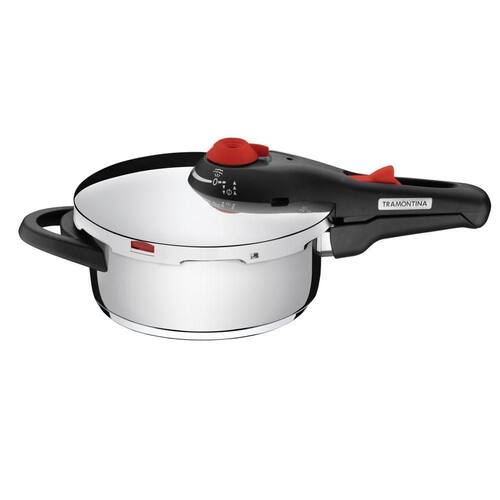 Panela de Pressão Tramontina Solar de 80/95 kPa de pressão de trabalhoTotalmente feita de aço inox, por isso não solta nenhum resíduo nos alimentos, mantendo-os saudáveisAltamente durável, mantém as características , preservando a beleza, a higiene e a durabilidade do materialO fundo triplo (aço inox + alumínio + aço inox) distribui o calor uniformemente, proporcionando um cozimento mais rápido e uniforme, economizando energia e deixando os alimentos aquecidos por mais tempoAlça e cabo antitérmico, que garantem segurança e facilidade no manuseioPossui 5 dispositivos de segurança que trabalham de forma integradaA panela possui medidor de capacidade internamente, o que facilita o controle das quantidades dos alimentosPossui sistema de descompressãoÉ atestada pela Norma Nacional de SegurançaAcompanha manual de instruçõesPode ser utilizada nos fogões: gás, elétrico, vitrocerâmico e induçãoO cozi-vapore pode ser adquirido separadamente: 62516/500Anel de vedação para reposição: 62516/970