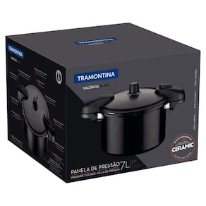 Panela de Pressão Valência Black 24 cm 7 L em Alumínio com Revestimento Cerâmico Preto Tramontina - Na sua casa