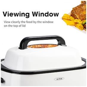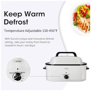 Tampa visível e auto regueada Equipada com tampa de vidro visível para um controle mais conveniente para peru, bifes ou outras carnes, criando perus com boa cor e sabor, cozinha uniformemente sem pontos quentes. A tampa auto alinhada recircula continuamente a umidade, torna a carne macia e suculenta e não gruda na panela. Configuração de aquecimento rápido e descongelamento, aquecimento O torrador elétrico leva menos tempo para cozinhar do que um forno. Torradeira de 1450W com luz vermelha, controle de temperatura, torna sua comida mais saborosa em diferentes temperaturas. O torrador elétrico de peru leva apenas algumas horas para descongelar o peru até que esteja assado. O torrador elétrico com configuração de aquecimento mantém o jantar na temperatura ideal para servir. Anti incrustante e fácil de limpar O torrador elétrico é feito de aço inoxidável reforçado, resistente à ferrugem. Alças Cool Touch na tampa e no corpo, podem proteger suas mãos Pote de inserção removível, torna o torrador de ação de graças mais fácil para você limpá lo. Durabilidade extra longa A Sunvivi é líder em utensílios de cozinha com mais de 20 anos de experiência. Esperamos que nosso forno assadeira possa acompanhá lo em todos os invernos