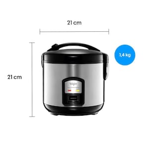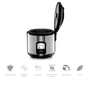 Panela de Arroz Elétrica Elgin com capacidade para 5 xícaras ou 1,0 L, tamanho adequado para o preparo da maioria das receitas. Potencia de 400W. Fácil utilização, basta apertar um botão e pronto! Função manter aquecido que mantém o alimento preparado pronto para servir. A tampa basculante com sistema de trava é prática e elegante. Cuba antiaderente de fácil limpeza. Acompanha colher, copo medidor e bandeja para preparo no vapor.Botão de travamento da tampaESPECIFICAÇÕES TÉCNICASPeso (kg) 1,4Consumo (KW/H) 0,4Capacidade em Litros 1 LPotência (W) 400Dimensões (A x L x P) mm 250 x 210 x 210CARACTERÍSTICASRevestimento AntiaderenteAço InoxidávelCapacidade para 5 xícarasPotência de 400WFunção manter aquecidoTampa basculante com travaConteúdo da embalagem:01 Panela de Arroz01 Cuba com revestimento antiaderenteManual de instruções01 Colher para servir01 Copo medidor01 Bandeja de preparo no vapor*Garantia: 12 meses contra defeitos de fabricação.*Objetos de decoração das fotos não estão inclusos.*As cores podem variar conforme monitor/smartphone utilizado para a visualização do anúncio.
