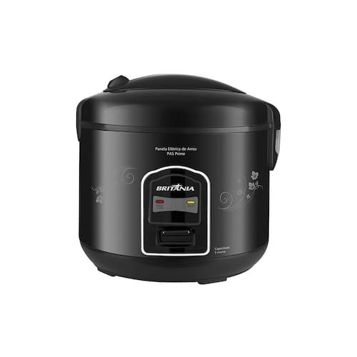 Panela elétrica de arroz Britânia PA5 Prime com capacidade para 5 xícaras, potência de 400W, função manter aquecido, tigela antiaderente removível Dura Mais, copo medidor e colher.Lâmpada piloto