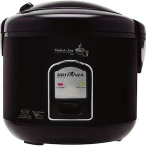 Panela elétrica de arroz Britânia PA5P com capacidade para 5 xícaras, ou 1.2L, acompanha colher, copo medidor, tampa com vedação e travamento, saída de vapor, coletor de água, tigela antiaderente e luzes indicadoras de funcionamento.Lâmpada piloto