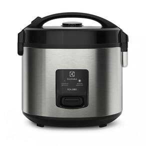 Panela elétrica de arroz Electrolux ERC20 com capacidade de 3,5L (até 10 xícaras), função 2 em 1 (cozinha arroz e vegetais a vapor), função Manter Aquecido (até 2 horas), design em aço inox, recipiente interno antiaderente, tampa com trava e protetor térmico. Acompanha bandeja de cozimento a vapor, copo medidor e colher.Lâmpada piloto