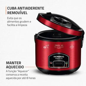 CAPACIDADE DE 10 XÍCARAS: A panela de arroz Mondial tem a capacidade na medida certa para toda a família.