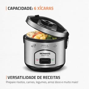 CAPACIDADE DE 6 XÍCARAS: A panela de arroz Mondial tem a capacidade ideal para o arroz do dia a dia e outras receitas.