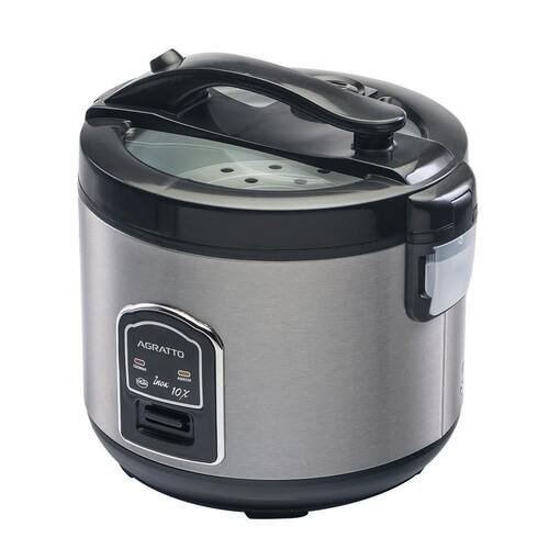 Panela Elétrica De Arroz PAI10X 10 Xícaras 700W Agratto Inox 110V Mais saúde no seu dia a dia com a Panela de Arroz e Legumes Agratto. Prepare arroz e deliciosos legumes cozidos no vapor com a Panela de Arroz e Legumes. Muita praticidade usando o dispenser para legumes. Arroz Branco, Parboilizado, Integral, arbóreo, cateto, negro. É só escolher seu arroz favorito e aproveitar.