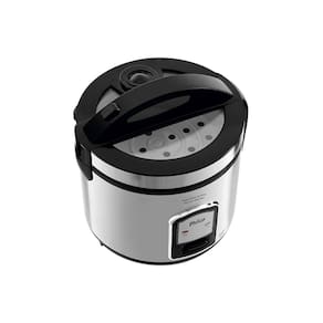 Panela elétrica para arroz com capacidade de 5 xícaras, tampa com visor de vidro, panela antiaderente e coletor de água.